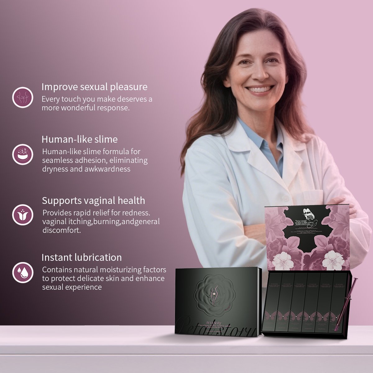 With bionic love liquid formula, it instantly lubricates, hydrates and tightens private parts. The “octopus bionic co-promotion” technology cares for intimate health in multiple dimensions from self-secretion to cell activation.